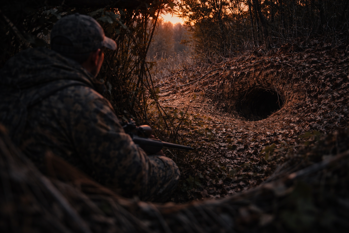 Ночь была не тёмной, а вязкой. Такой, в которой свет фонаря не режет темноту, а тонет в ней, будто в мокром снегу. Серёга вышел к норе поздно, специально дождавшись, когда лес окончательно замрёт и все лишние звуки уйдут. Барсук таких ночей не любит, но именно в них он чувствует себя увереннее всего. Когда человек начинает сомневаться, зверь уже действует. Нора была старая, проверенная. Не первый год по ней ходили, и каждый раз казалось, что знаешь её наизусть. Два хода, основной и запасной, выходящие в разные стороны склона. Так думали все. Именно это и усыпляет внимательность. Старые норы почти никогда не бывают простыми. Они растут годами, уходят вглубь, обрастают ответвлениями, и в какой-то момент ты перестаёшь понимать, где заканчивается звериный дом и начинается лабиринт. Серёга присел, прислушался. Тишина была неправильная. Не пустая, а напряжённая. Барсук где-то был, это чувствовалось кожей. Он не вышел сразу, как бывало раньше. Он ждал. И этим ожиданием начинал управлять охото