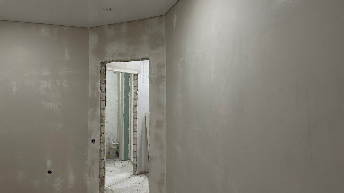 Днём стена кажется ровной и аккуратной, а вечером при включенном свете вдруг появляются тени, волны и неровности.