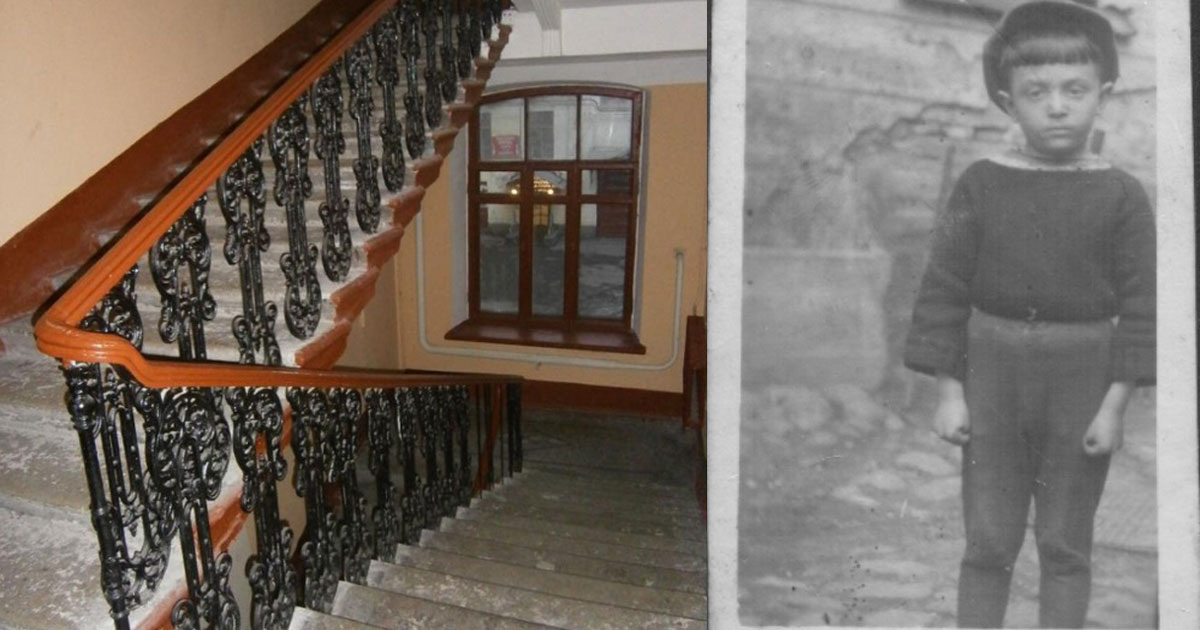 Именно у этого окна, между первым и вторым этажом, на Среднем проспекте, в доме 49 всю блокаду сидел еврейский старец и молился. На тогда еще мраморном подоконнике были расставлены Талмуд и молитвенники. У старца была большая седая борода. Он жил совершенно в своем мире, ни на кого не обращая внимания. Мой дед Абрам верил, что его молитвы оберегают их дом от бомбежки. А бомбежки были постоянно. Но Абрам не надеялся только на молитвы. Когда звучала сирена, он заворачивал моего полуторогодовалого отца в плед и бежал вместе со всей семьей (жена и двое детей) в подворотню. Дед опекал старца, помогал чем мог, отдал ему полушубок. Летом 1942 года семья моего отца эвакуировалась на Урал. Когда они вернулись, то увидели, что дом не пострадал. Абрам был уверен, что это случилось благодаря молитва