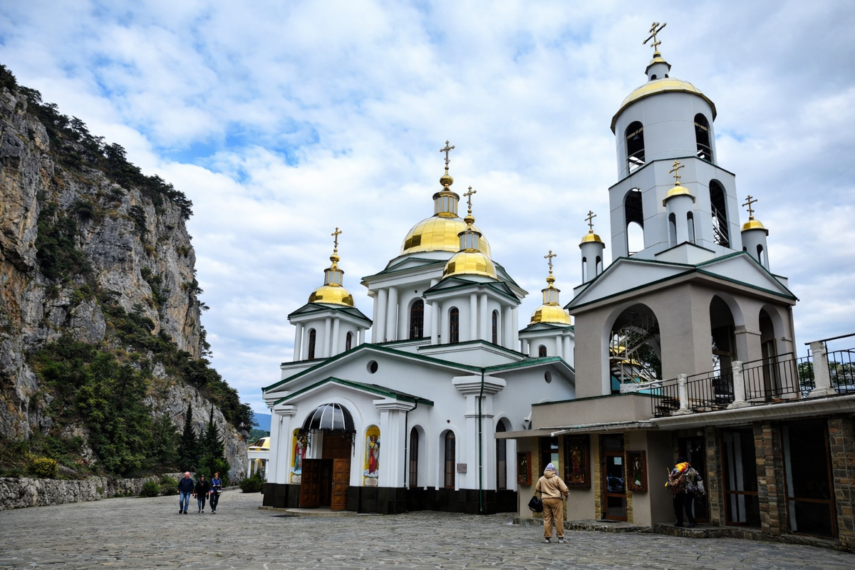 Это Храм святого Архангела Михаила. Он расположен на трассе Ялта–Симферополь, административно относится к городскому округу Ялта. Рядом есть одноимённая остановка «Храм Архангела Михаила».