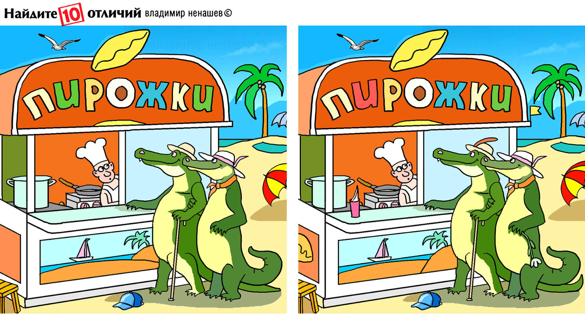 10 отличий про пляж и пирожки. Интересный тест для всех, кто хочет погреться и найти отличия.