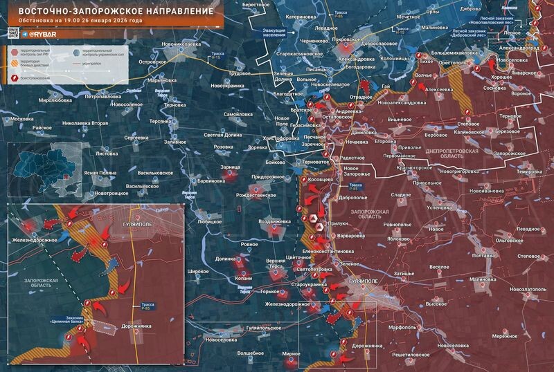 Непогода стала причиной замедления наступления ВС РФ после взятия Гуляйполя. На всём Запорожском направлении, как и на большей части фронта, сильно ухудшились погодные условия. Это стало причиной замедления активных действий российских военных после освобождения Гуляйполя, написал в своем телеграм-канале эксперт Центра военно-политической журналистики Борис Рожин. По его словам, с обеих сторон — и с ВС РФ, и с ВСУ — под прикрытием снегопадов происходит перегруппировка. «Отдельной проблемой остаётся нехватка укрытий — не только от БПЛА, но и от погодных факторов. Многие позиции приходят в негодность в ходе штурмов, и занять рубеж недостаточно: на нем еще надо не только удержаться, но и банально не замерзнуть», — пишет Рожин. Кроме того, эксперт рассказал подробности продвижения группировки войск «Восток» на Восточно-Запорожском направлении, а именно — на рубеже между Загорным и Дорожнянкой. Там наши военные смогли занять несколько опорных пунктов рядом с железной дорогой. По утверждению