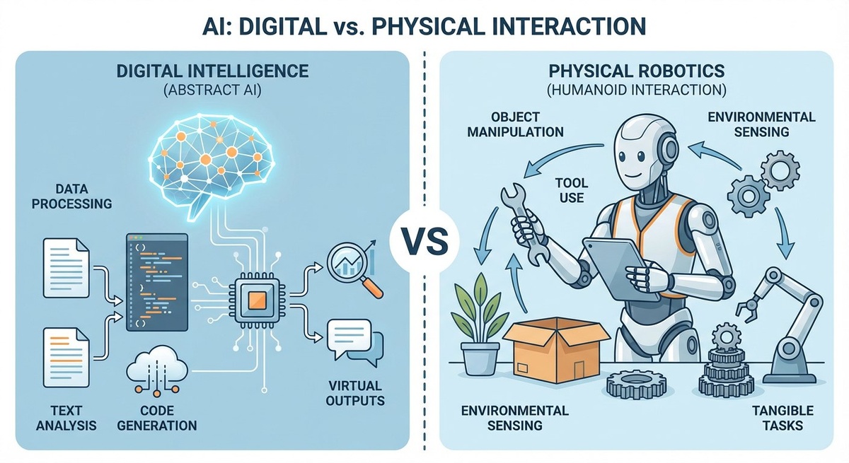 Physical AI существует в физической реальности. Он управляет телом, взаимодействует с объектами, подчиняется законам механики и сталкивается с тем, что любое действие может привести к падению, столкновению или повреждению.