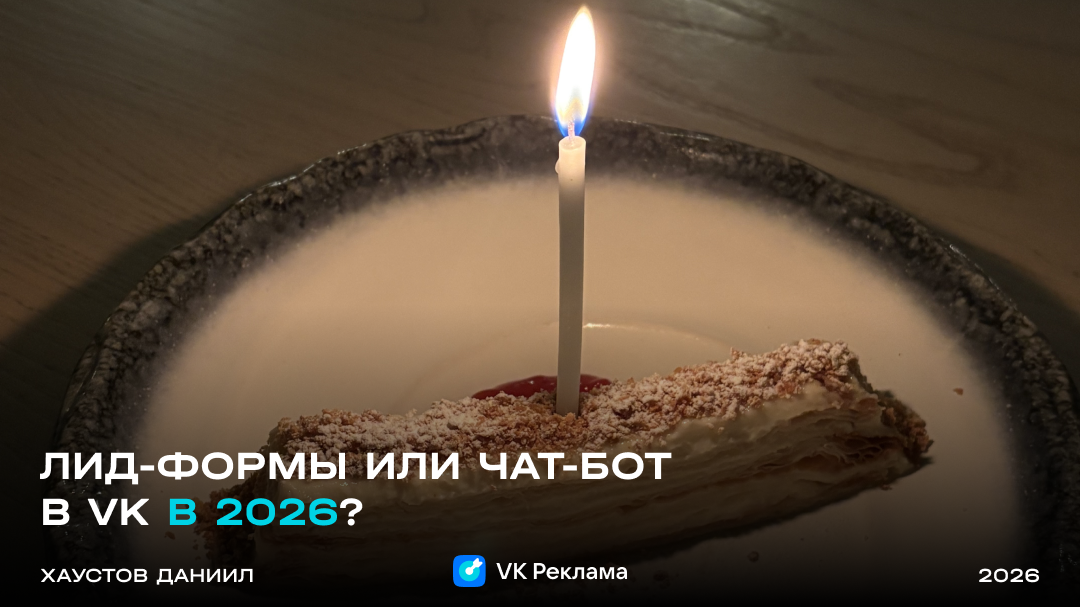 Вы сталкиваетесь с классическим выбором в VK Рекламе: вести трафик в лид-форму или чат-бот? В 2024-2025 годах большинство «гуру» кричали о превосходстве ботов. Но реальная практика и цифры 2026 года показывают иную картину. Я, Даниил Хаустов, протестировал оба подхода в десятках ниш. И вот мой главный вывод, основанный на цифрах: Выбор зависит не от тренда, а от вашей конкретной бизнес-логики. Давайте разложим по полочкам. Это самый частый и самый опасный миф. На практике всё с точностью до наоборот. Практический вывод: Качество лида определяет не инструмент, а логика оффера и путь клиента. Чёткая лид-форма часто фильтрует лучше свободного диалога с ботом. Это устаревший взгляд. Современная лид-форма в VK — это полноценная точка конверсии с гибкими настройками полей, что напрямую влияет на качество входящих заявок. Правило простое: лид-форма — это тактика «здесь и сейчас», а чат-бот — стратегия «накопления и прогрева». Лид-форма нужна, чтобы получить контакт готового к диалогу клиента
