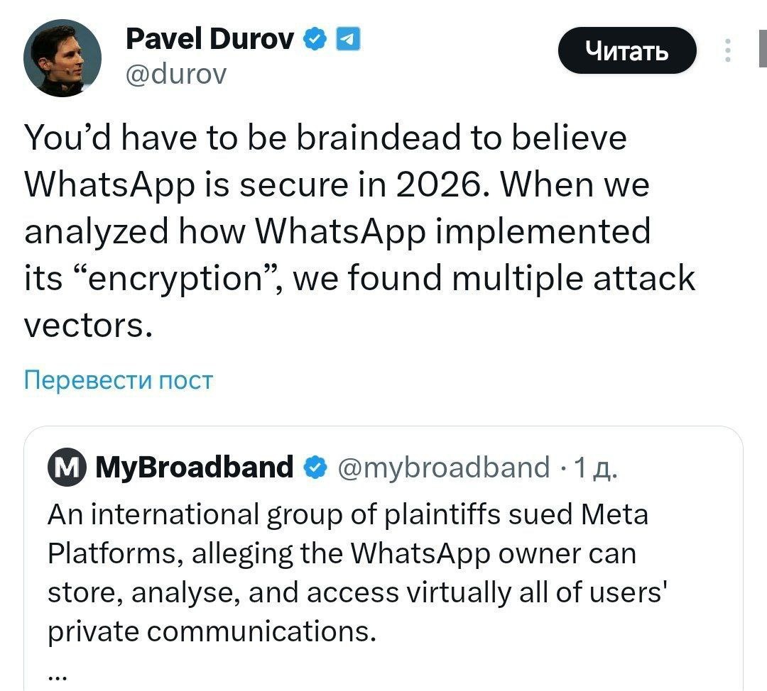 «Нужно быть полным идиотом, чтобы поверить в безопасность WhatsApp* в 2026 году