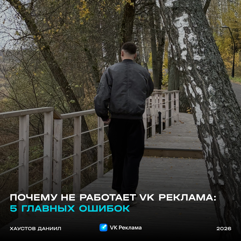 Вы вкладываете бюджет в VK Рекламу, а получаете только красивые цифры охвата и дешёвые клики, но ни одной заявки? Знакомая ситуация. За 4+ года работы с более чем 50 нишами я увидел, что 90% неудач сводятся к пяти повторяющимся ошибкам. Давайте разберём каждую на примерах из моей практики и посмотрим, как это исправить. Самая частая ошибка. Пользователю нужен не ваш логотип, а решение его проблемы. Он ищет кухню, хочет записать ребёнка в секцию или задумал ремонт. Вместо «Мы производим кухни» — «Кухня вашей мечты за 14 дней». Вместо «Футбольная школа» — «Отдайте ребёнка в спорт. Первая тренировка — бесплатно». Покажите, как изменится жизнь клиента после обращения к вам. Главный вопрос: «Что видит человек, глядя на мой креатив? Он видит решение своей боли или просто красивую картинку?» Это основа любого сообщения, будь то VK Реклама или Директ. О том, как правильно говорить с аудиторией, я подробно писал в статье о принципе Юджина Шварца. Запускать рекламу на «женщин, 25-55 лет, весь го