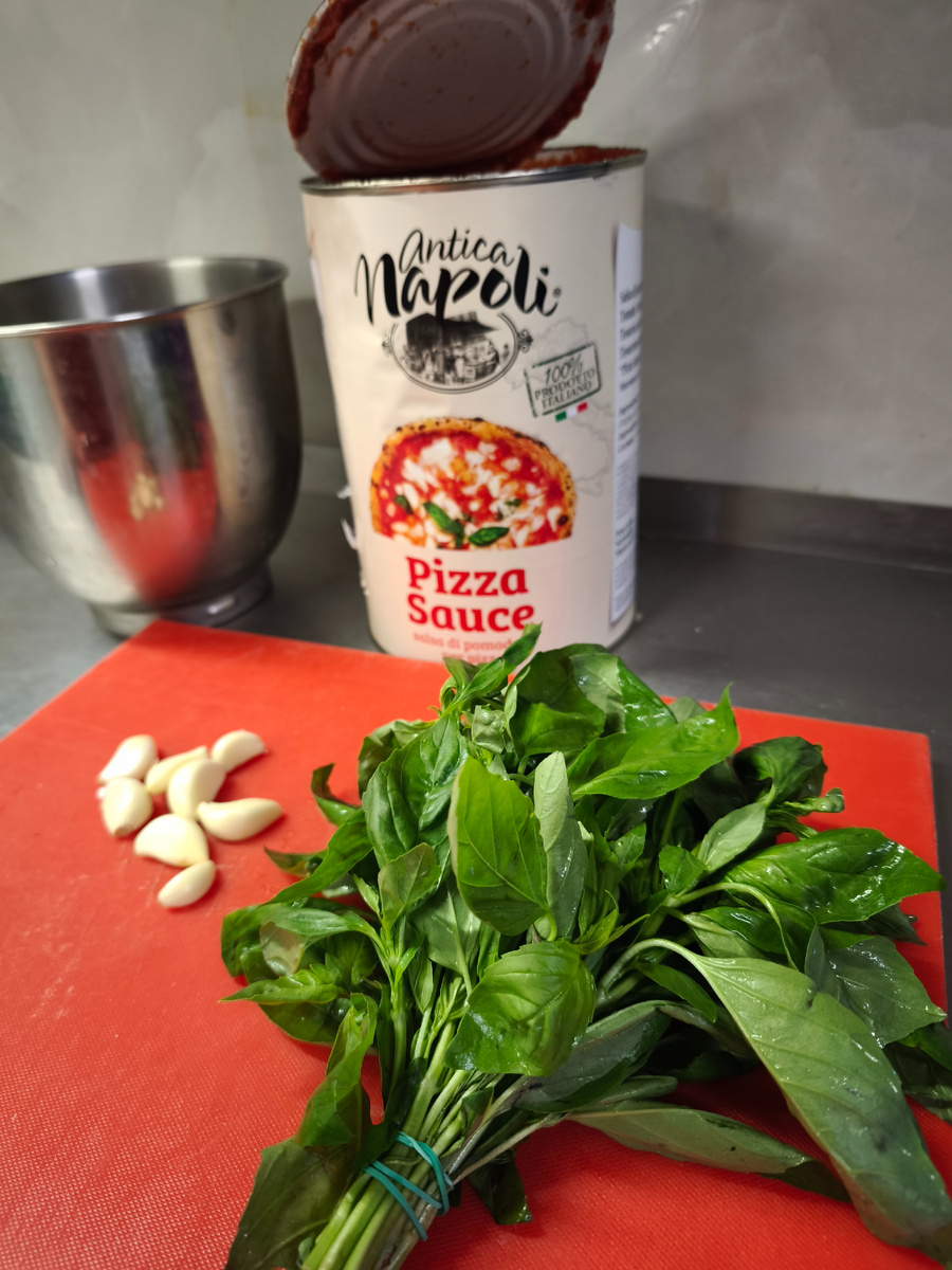 Томаты измельчают до однородной текстуры, добавляют соль, немного оливкового масла и мелко нарезанный базилик. В классическом варианте соус для пиццы часто не подвергают длительной термической обработке: он доходит до готовности уже в духовке вместе с тестом. Это позволяет сохранить свежесть вкуса и естественную сладость томатов.
