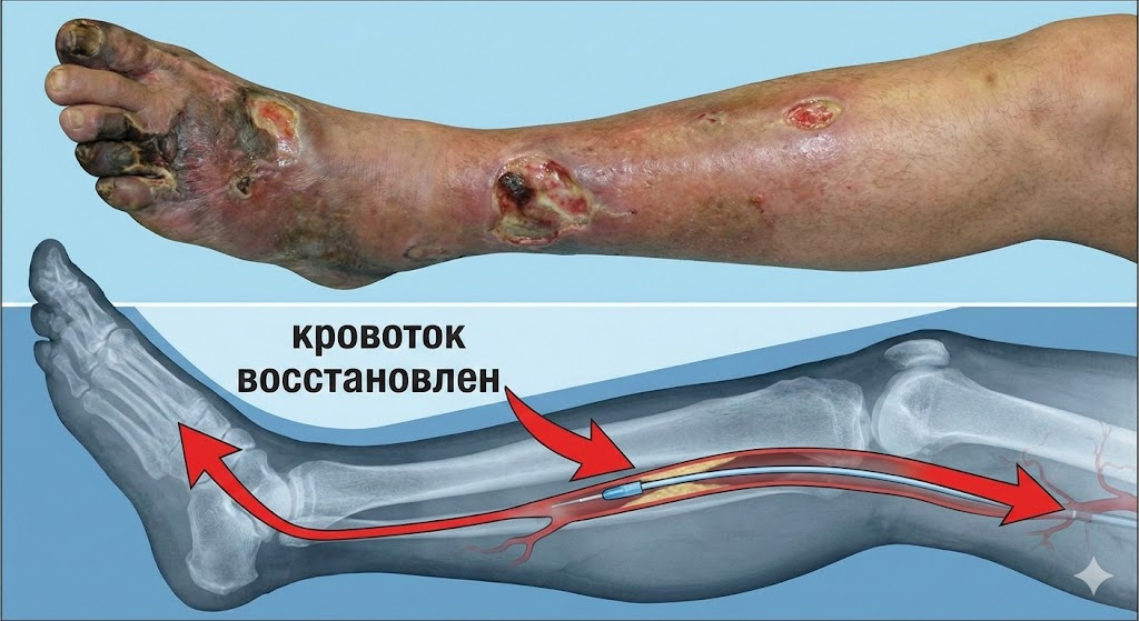 Показания строгие: критическая ишемия 3–4 стадии — боли в покое, трофические язвы, гангрена стопы. Если человек ещё ходит 50+ метров — его отправляют на таблетки. Операция — только когда нога вот‑вот отвалится.