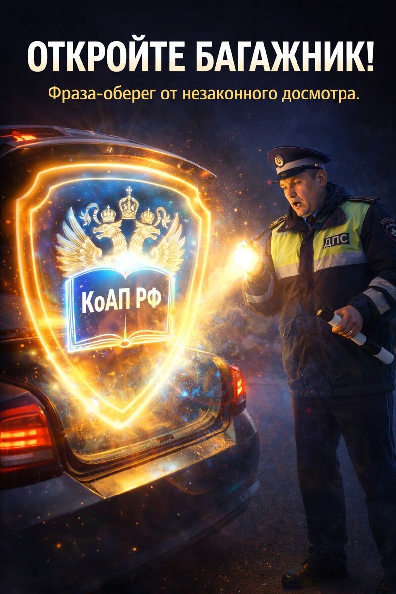 Знакомая ситуация: вас останавливает инспектор, проверка документов проходит штатно, но вдруг звучит фраза: «А что у нас в багажнике? Откройте, пожалуйста». В этот момент у многих водителей срабатывает «триггер страха». В голове проносится: «А что, если я откажу? Будет хуже? Вдруг подумают, что я что-то прячу?». На этом психологическом давлении и строится большинство проверок «на авось». Давайте разберемся, как вежливо и быстро закончить этот диалог, не выходя из машины. Главная причина, по которой инспекторы просят «просто открыть» багажник — это размытие границ между двумя абсолютно разными процедурами. 2. Досмотр (ст. 27.9 КоАП РФ). Это уже серьезное процессуальное действие. Досмотр предполагает, что инспектор будет изучать содержимое багажника, бардачка или сумок. Важно: Для досмотра у инспектора должны быть веские основания (ориентировка или подозрение в совершении правонарушения). Он не может проводиться «просто для профилактики». Как только вы слышите просьбу открыть багажни