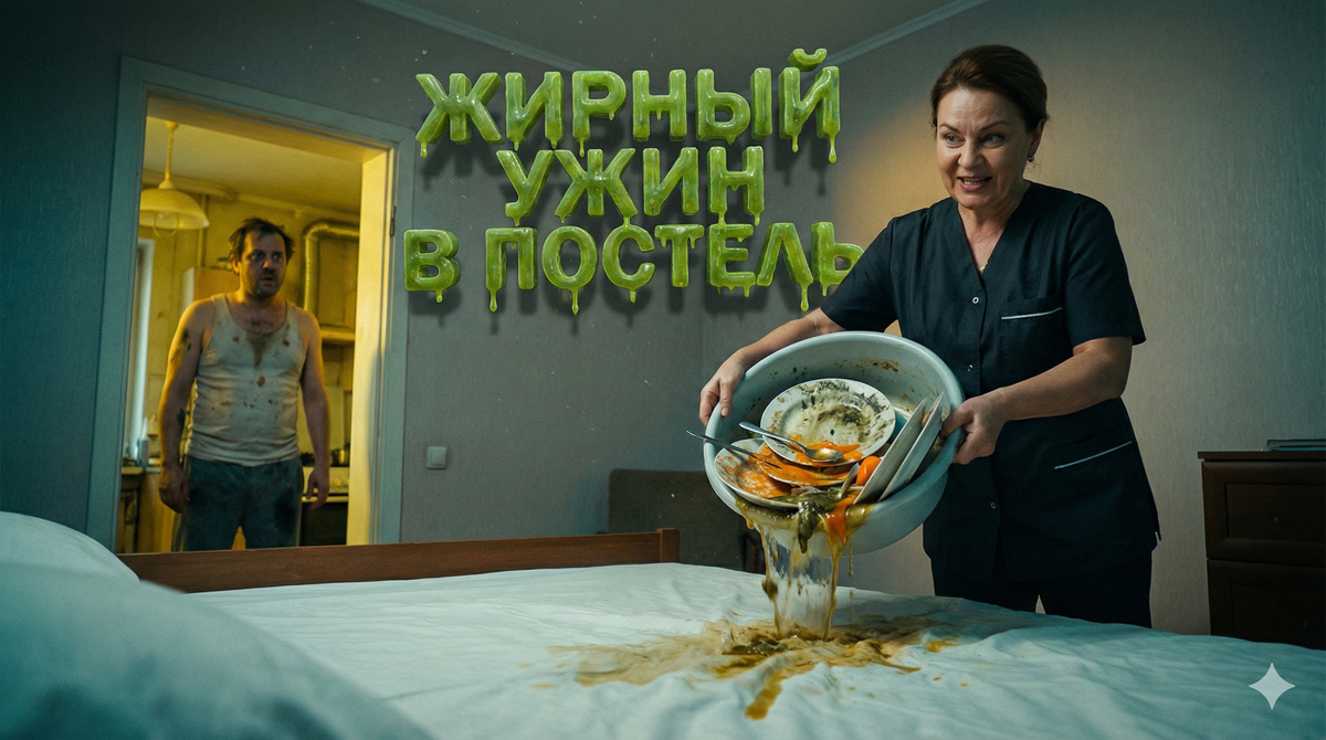 — Ты... Ты что наделала?! — прохрипел Сергей, тыча пальцем в сторону спальни. — Ты совсем рехнулась?! Там... Там помойка в кровати! Я лег в жир!