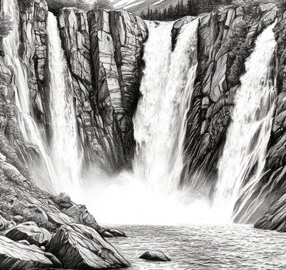 Когда она вышла на открытую площадку у подножия, дыхание перехватило. Шум водопада оказывал почти физическое давление на нее. Воздух вибрировал, мелкая дрожь шла по земле и входила в её тело через подошвы. Водопад жил пульсирующей, дышащей сущностью. Белая пена у основания клокотала, как гигантский котёл, а середина струи была прозрачно-зелёной, твердой, как ледяной клинок.