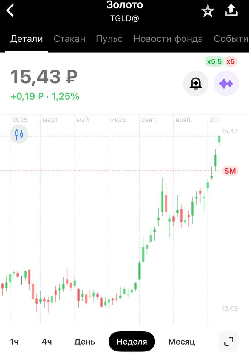 Продолжаю стратегию «выход по стопу» из фонда $TGLD@ Сейчас доля от #иис составляет 7,07% Переставляю стоп 📌 на полный выход из актива на низ свечи прошлой недели - 14,38р (+2,69% было 14,11р) Но я решил модернизировать эту стратегию 🔝 Так как рост не прекращается, то я буду еще и докупать примерно по 0,2% от #иис Если будет дальше расти, то каждая покупка будет увеличивать мой заработок. А как сработает 🛑 , то убыток будет минимальным и только от последней покупки Прибыль к стопу от моей средней >30% #прояви_себя_в_пульсе