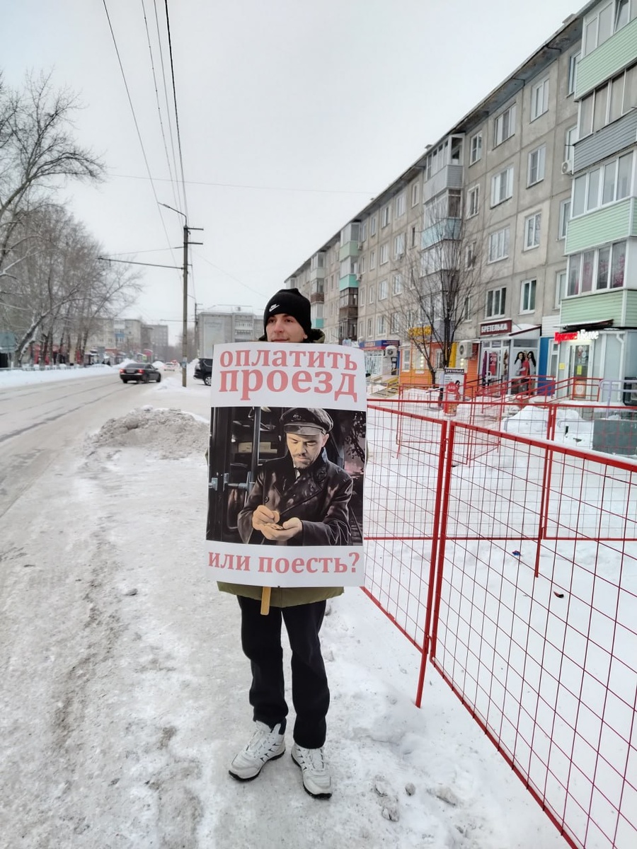 Одиночные пикеты против резкого повышения стоимости проезда в общественном транспорте прошли в Рубцовске Алтайского края. Акцию провели местные комсомольцы. Билеты на троллейбус подорожали с 35 до 45 рублей по решению местной администрации. Цены на месячный проездной — с 1575 до 2025 рублей, сказано в постановлении мэрии. Школьные проездные подорожали почти вдвое с 840 до 1665 рублей в месяц, студенческие — с 1540 до 2250 рублей. Депутат заксобрания от КПРФ Андрей Чернобай обратился в краевой минтранс и ФАС. После этого тарифы для школьников и студентов снизили до до 1080 и 1980 рублей соответственно. «Но проблема остаётся, — рассказал Чернобай в своём телеграм-канале. — Общий рост за год всё равно огромен. Расчёты не опубликованы, обсуждений не было». (Фото @gha9rsa) Подписаться| Прислать новость| Помочь бустами