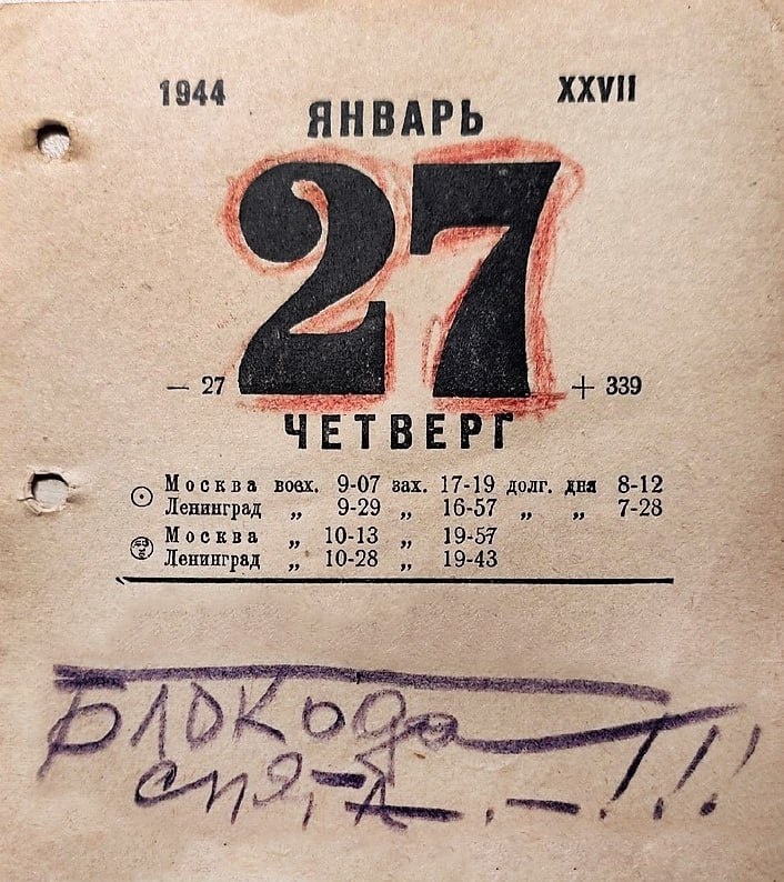 ! 27 января 1944 года по радио был зачитан приказ Военного совета Ленинградского фронта о полном освобождении Ленинграда от блокады: — Граждане Ленинграда! Мужественные и стойкие ленинградцы! Вместе с войсками Ленинградского фронта вы отстояли наш родной город. Своим героическим трудом и стальной выдержкой, преодолевая все трудности и мучения блокады, вы ковали оружие победы над врагом, отдавая для дела победы все свои силы. От имени войск Ленинградского фронта поздравляю вас со знаменательным днем великой победы под Ленинградом. Сегодня, 27 января, в 20 часов, город Ленина салютует доблестным войскам Ленинградского фронта 24 артиллерийскими залпами из 324 орудий. Сегодня город отмечает 82-ю годовщину со Дня полного освобождения Ленинграда от фашистской блокады. Погода сегодня будет морозной: Утро 🌫 -18°C День ⛅️ -13°C Вечер 🌫 -17°C Восход: 09:24 🌞 Закат: 17:01 🙌 Пресс-сек Красногвардейского