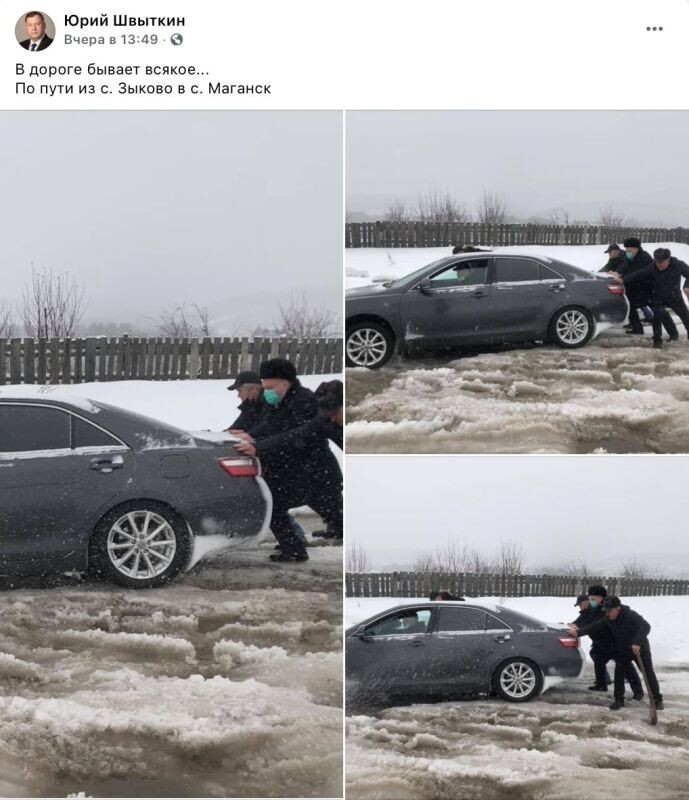 Глава Минусинска Дмитрий Меркулов улетел в кювет по дороге в Красноярск. Рано утром 26 января Дмитрий Меркулов на служебном автомобиле с водителем направлялся в Красноярск. В какой-то момент перед ними на встречку выскочила другая машина. Как отметил Меркулов, опытный водитель успел повернуть руль, чтобы уйти от столкновения, но пришлось съехать в кювет, сообщил Меркулов. «Чуть лоб в лоб не врезались сейчас. Улетели с дороги. Навстречу вылетела машина — на нашу сторону. Хорошо, водитель с опытом — резко в кювет. Не перевернулись, слава богу», — рассказал глава Минусинска на видео, которое записал с места происшествия. Ранее депутат Госдумы от Красноярского края и зампредседателя комитета по обороне Юрий Швыткин уже толкал застрявшую на бездорожье машину, пытаясь, что называется, «заработать очки» в преддверии думских выборов, о чем напомнил телеграм-канал «НеНаши». Издание не исключает, что видео с места ДТП Меркулов снял и выложил в публичное пространство тоже не случайно. "Всё но