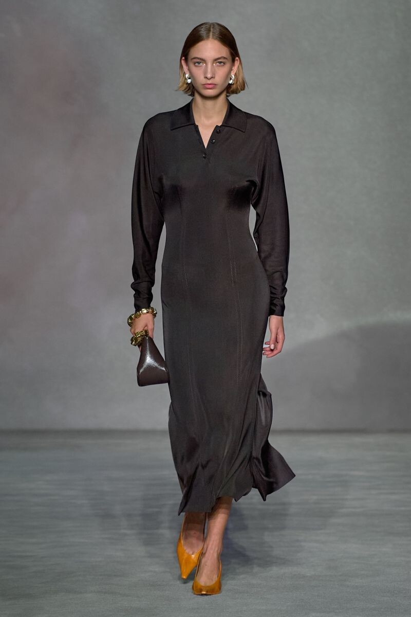 Его главный козырь - он создает тот самый «эффект второго слоя кожи», но не обнажая, а облачая. Он делает образ цельным, собранным, но абсолютно не напряженным. Это платье цвета хаки - это анти-гламур в самом лучшем смысле. Оно говорит: «Мой стиль - это часть меня, а не костюм для представления». Он сочетается со всем: с золотом, с кожей, с грубым трикотажем. В нем вы чувствуете себя спокойной и невероятно современной.