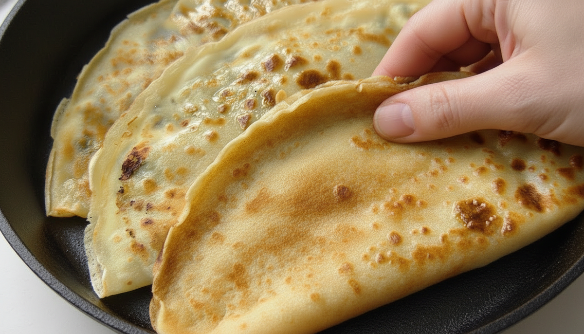 Я обожаю рецепты, где не нужно пачкать руки в муке и часами вымешивать тесто. Этот способ приготовления стал для меня открытием. Получается что-то среднее между чебуреками и блинчиками с начинкой, но готовится в разы проще и быстрее. Идеальный вариант, когда хочется чего-то горячего и домашнего, но лень возиться. Весь секрет — в технике «ленивой» лепки прямо на сковороде. Готовим быстрое тесто Беру глубокую миску. Вливаю теплую воду — так мука лучше разойдется. Добавляю соль и сахар. Сахар кладу обязательно, он усиливает вкус теста, даже если начинка несладкая. Вливаю немного растительного масла. Просеиваю муку и замешиваю тесто венчиком. Никаких рук! Тесто должно получиться однородным, без комочков и достаточно жидким, чтобы легко растекалось по сковороде. Сочная начинка Пока тесто стоит, занимаюсь творогом. Выкладываю его в миску. Если творог крупный, можно размять вилкой. Добавляю соль и черный перец. Зелень (я беру укроп) мелко нарезаю и отправляю к творогу. И главный ингредиент дл