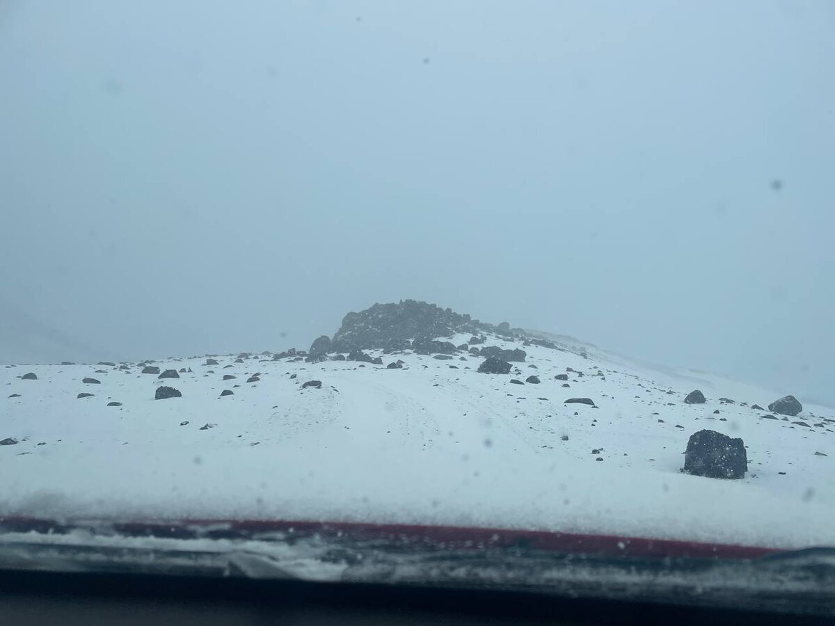 Прогнозы зря не пишут (тут 50 на 50, но в нашем случае угадали). Ровно в пять часов, когда мы уже подходили к машинам, пошёл снег, который быстро превратился в снегопадище. Окружающее нас пространство тут же преобразилось. Пустыня Атакама покрылась снегом. Камни, дороги - всё стало каким-то причудливым. Кто в этом надписи видел, кто лица людей. Сами понимаете, ночь не спали, чего с нас взять. И в лагере тоже был снег, и верхушки гор забелели. Вот такой сюрприз нам Атакама подкинула напоследок.