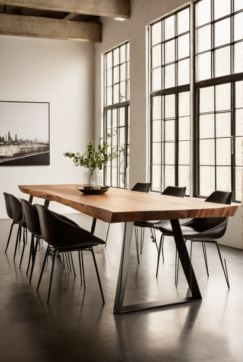 Дизайн стола для современного интерьера: обеденный стол со столешницей из слэба, письменный стол и журнальный столик в индустриальном стиле