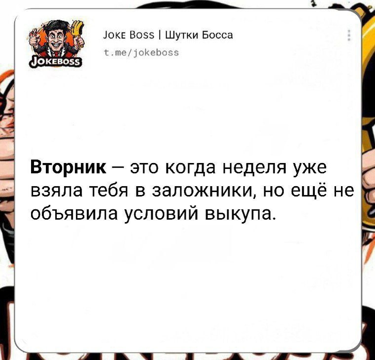 Не первый, не середина, не конец. Просто серая зона между паникой и принятием, где единственное развлечение — считать часы до среды. #Вторник #СераяЗонаНедели #ЗаложникБезВыкупа #юморпроработу #шутки #joke #jokeboss #шуткибосса #суббота #юмор #шутки #joke #jokeboss #шуткибосса