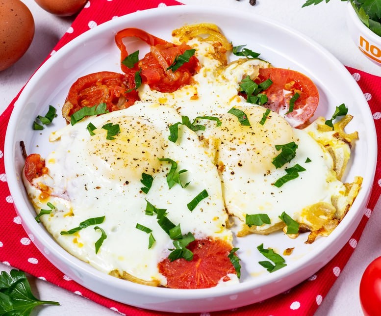 🍳🧀🍅 📝ИНГРЕДИЕНТЫ (на 1–2 порции): Яйца — 3–4 шт Помидоры — 2 шт (средние) Сыр твёрдый (или любой, который хорошо плавится) — 50–70 г Соль, чёрный перец — по вкусу Растительное или сливочное масло — 1 ст. л. Зелень (укроп, петрушка или базилик) — по желанию 🍽ПРИГОТОВЛЕНИЕ: Разогрейте сковороду на среднем огне, добавьте масло. Нарежьте помидоры кружочками или кубиками, выложите на сковороду и обжарьте 1–2 минуты, чтобы они слегка пустили сок. Разбейте яйца прямо на помидоры, посолите, поперчите. Можно слегка перемешать для скрэмбла или оставить глазуньей. Готовьте 3–4 минуты на среднем огне, пока белок схватится, а желток останется жидким (или доведите до желаемой степени прожарки). Посыпьте сверху тёртым сыром и накройте крышкой на 1–2 минуты — сыр расплавится. В конце посыпьте свежей зеленью и сразу подавайте с хлебом или тостом. Приятного аппетита и бодрого утра! 😊 @Живёт же Беларусь!