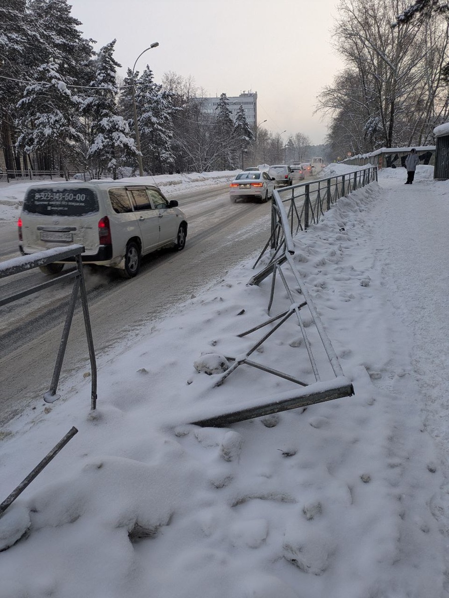! Около остановки "Высший колледж информатики" снесли заборчик, отделяющий проезжую часть от пешеходной зоны. Благо, пешеходов в этом месте не было, а то летящие в них острые пики этого "безопасного" сооружения могло стать последним, что они увидели бы в своей жизни! P.S. Если по всей стране чуть ли не в приказном порядке где нужно и где не нужно устанавливливаются подобные заборчики, значит, заводы по производству этих "безопасных" конструкций принадлежат очень правильным людям! Фото: житель Шлюза Михаил.