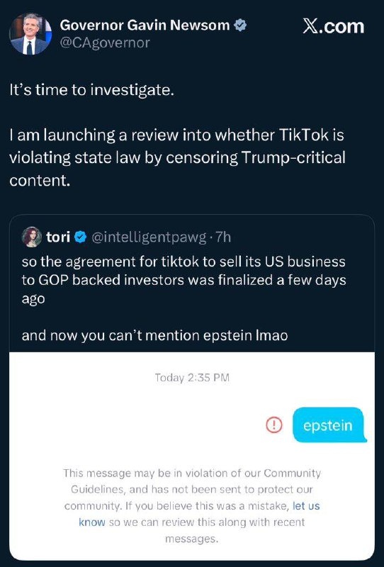 TikTok CENSORS the word ‘EPSTEIN’ in DMs