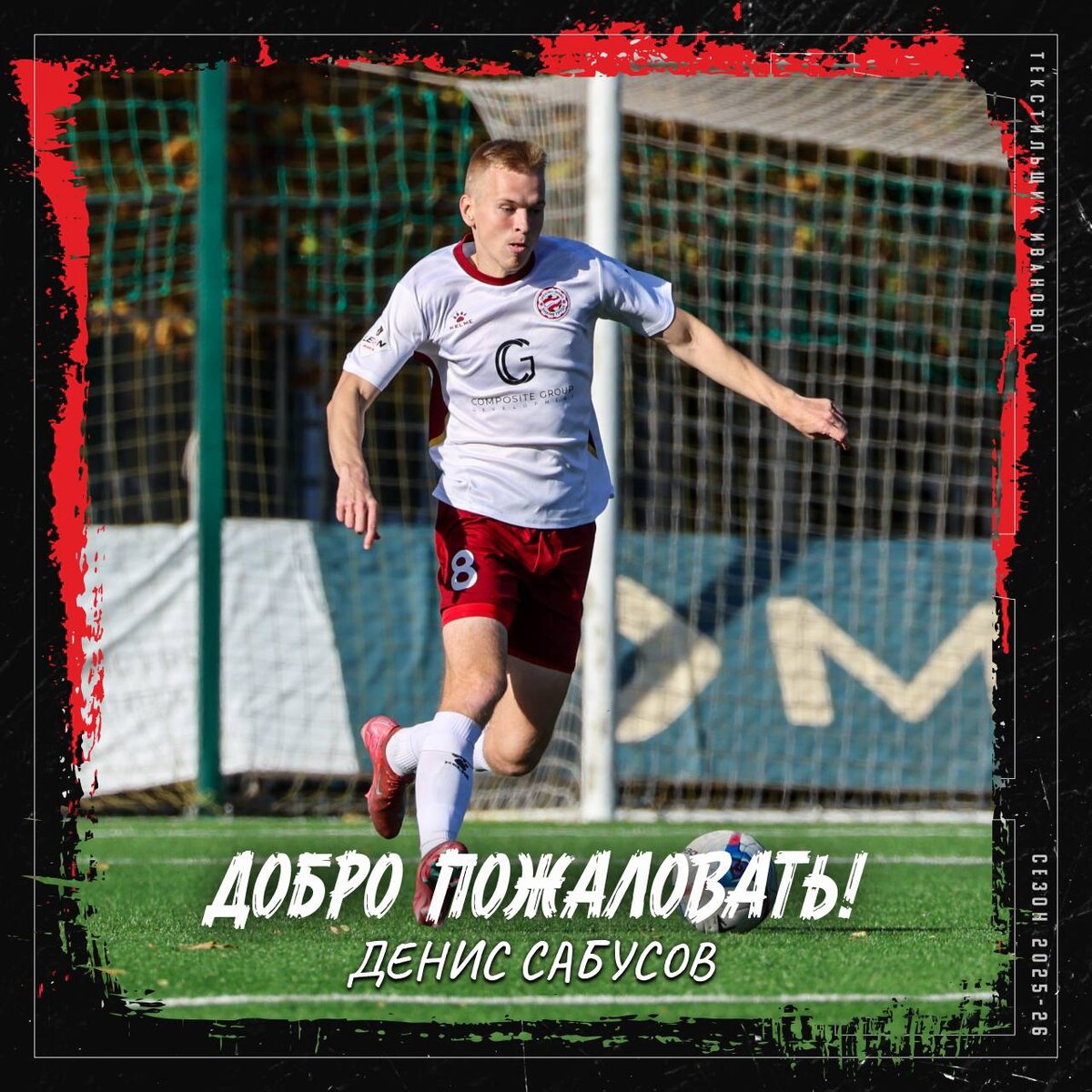 🚨 Полузащитник Денис Сабусов пополнил состав футбольного клуба «Текстильщик».