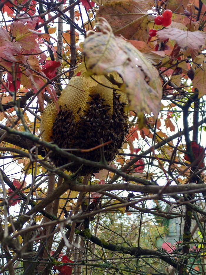 Дело было два года назад поздней осенью. Пойдя за грибами, я обнаружил дикий улей с пчелами. Первая мысль жены, бежать делать улей и перетаскивать себе пчел на зиму. Быстро погуглив, я понял, что в 99% пчелы у меня помрут, и не видать мне сладкого меда. Тогда я принял решение, что пчелами должен заниматься человек, который в этом разбирается. Кинув клич, откликнулись несколько человек, ближайший был приглашен. Со дня на день обещали уже заморозки и пчелы бы погибли, поэтому вся "операция" прошла буквально за несколько дней. Пчелок переселили в новый домик, а меня угостили пару литрами свойского меда. К сожалению я очень спешил, и не успел заснять весь процесс. Но мне потом позвонили вечером, и сказали, что все прошло хорошо. Только жена осталась недовольна, в её мечтах у нас уже была пасека, ну да у нее 7 пятниц на дню, там, то курятник думает чтобы я строил, то парасят заводил))) Пост автора andbest. Читать комментарии на Пикабу.