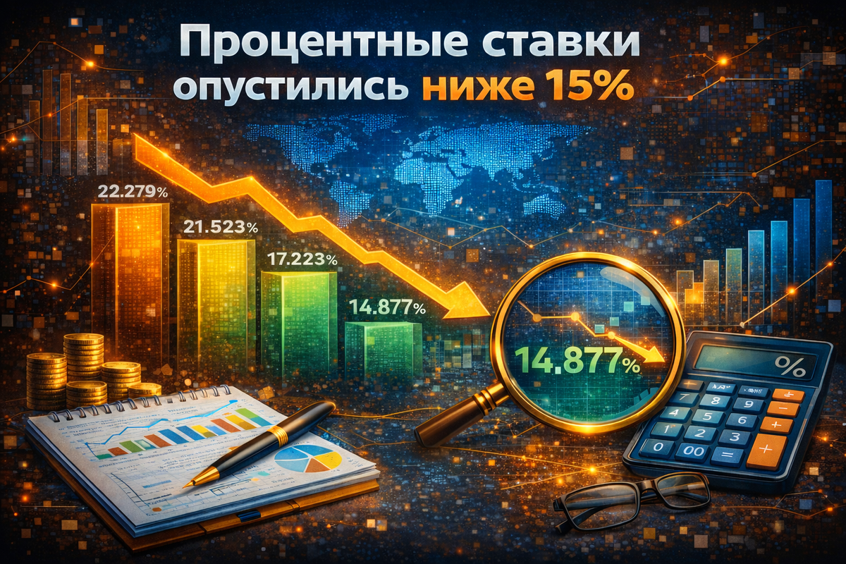 26 января 2026 года на сайте Центрального банка вышел пресс-релиз, в котором обозначены результаты мониторинга 10 банков. Впервые за долгое время ставка опустилась ниже 15%, это может быть некоторым психологическим уровнем, ведь ранее, такая ставка была почти полтора года назад. Я регулярно разбираю такие темы в своём Telegram-канале, если вам интересно глубже понимать аналитику и работать с данными, там регулярно выходят короткие заметки и практические примеры. По данным Банка России: ставка 15,102% (I декада января) снизилась до 14,877% (II декада января). То есть минус 0,225 п.п. всего за 10 дней. Если смотреть динамику за полный период, то ситуация такая: Последний раз значения ниже 15% были в мае 2024 (II декада - 14,952%). То есть текущий уровень - это возвращение в зону “до большого цикла высоких ставок”. Снижение депозитных ставок - это обычно сигнал про то, что банкам нужно меньше привлекать дорогие деньги, и/или рынок закладывает более мягкие сценарные условия в будущем. При