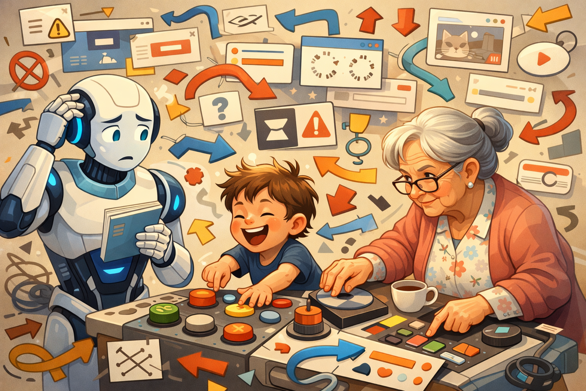 Есть одна категория людей, которая стабильно ломает искусственный интеллект, и это вовсе не хакеры, не тролли и не те, кто специально пишет запросы в стиле «а сделай мне вот это, но не так, как надо». Хуже всего ИИ понимает детей и пожилых людей. И чем больше над этим думаешь, тем очевиднее становится причина. Современные алгоритмы обучаются на поведении так называемого «среднего взрослого». Человека, который действует более-менее рационально, придерживается логики, следует инструкциям и не меняет правила игры на ходу. Для ИИ это комфортная среда. Всё предсказуемо, данные сходятся, выводы строятся. А потом в систему заходит ребёнок. И начинает делать всё не так. Ребёнок может отвечать на вопросы в произвольном порядке, перескакивать с темы на тему, игнорировать очевидные шаги и действовать по внутренней логике, которая существует только у него в голове. Он может нажать не потому, что «так правильно», а потому что «так интересно». Для ИИ это выглядит как хаос. С пожилыми людьми ситуац