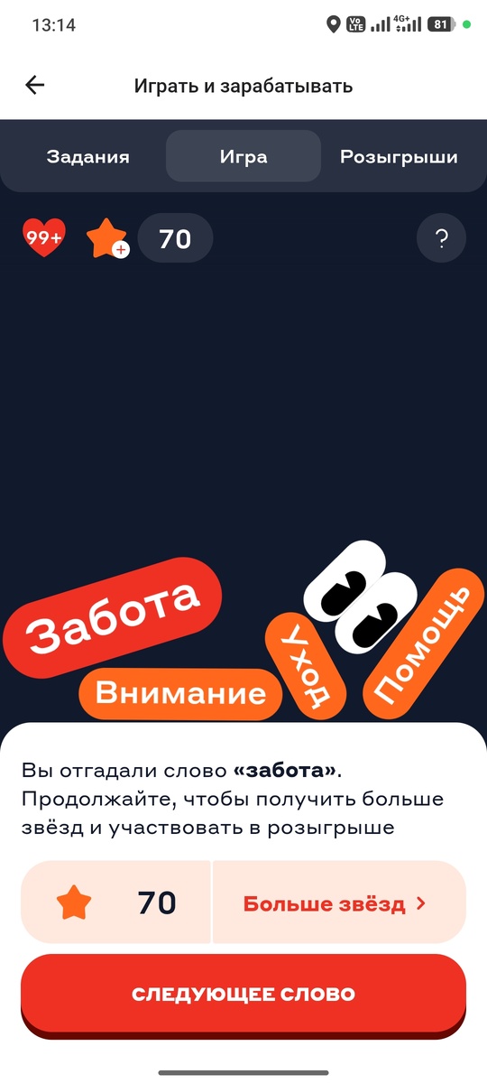 Всем привет. В погоне за призами от Альфа банка кидаю вам правильные ответы на сегодняшнюю игру ассоциации. Слово первое - ЗАБОТА Идем дальше, второе правильное слово на сегодня - БУЛЫЖНИК. И третье правильное слово - ВОКАЛ. Приложил скриншоты из приложения, чтобы вы удостоверились в правильности ответов. Приходите завтра и подписывайтесь на канал, чтобы не пропустить новые ответы.