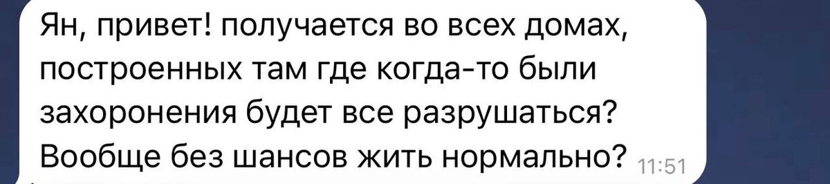 Решила ответить здесь. Зависит от конкретного места, от того, как люди были захоронены, как умирали, срок давности. Упокой / неупокой. Ранние смерти, жестоко или неожиданно убитые. Что находится вокруг этого места, есть ли какие-то объекты, которые смягчают или блокируют разрушения. Люди умирают всё время, с начала существования планеты. По сути, практически на каждом клочке земли кто-то когда-то умирал или захоронен. И это не является чем-то опасным. Массовые захоронения - более сильные и дольше находятся в активном состоянии. Есть земля, которая уже перестроилась и в целом не опасна. Там можно жить нормально. Одно можно сказать точно: разница в качестве жизни в нормальном месте и в доме, построенном на месте “активного” захоронения, очень большая. Во всём. Но смотреть нужно каждый случай отдельно, всё очень индивидуально. Ещё часто бывает, что при строительстве здания покой мёртвых нарушают и начинается жесть. Знаю случай, когда на месте древнего некрополя, где было множество ку
