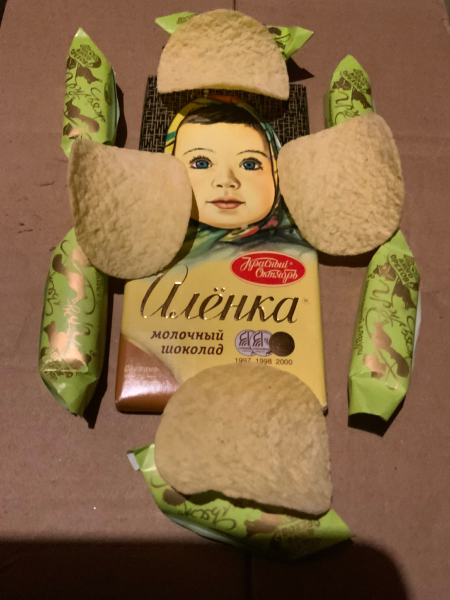 Вспомнилось вдруг как-то, когда засунул в рот конфету «Грильяж в шоколаде», но вспомнилось то, что нынешним 30-ти летним совсем неведомо, но ближе к сорока уже, похоже, помнят. Вкус конфеты сразу вернул во Времена СССР и повеяло тёплыми воспоминаниями. Но это, повторяю, конечно не для всех и многие страну ту ненавидят, наслушавшись басен Перестройки и БЕНовые сказки в лихие 90-е. Конфета, как ни странно, оказалась удивительно похожей на тот Грильяж от фабрики где есть и рот и фронт, что меня в детстве очень умиляло, а также изумляло - ну скажите пожалуйста, какой может быть фронт во рту?! Просто какой-то «рекбус, кроксворд, шарада». Что значит слово Фронт я знал уже тогда отлично - отец-фронтовик, да и вокруг было очень много фронтовиков. Ну и как всегда одна конфета вдруг потянула ещё букет воспоминаний, но утомлять не стану Вас, а лишь о нескольких «цветках из этого букета помяну. Шоколад «Алёнка» как тот же символ угробленной страны, по случаю нашлась неподал