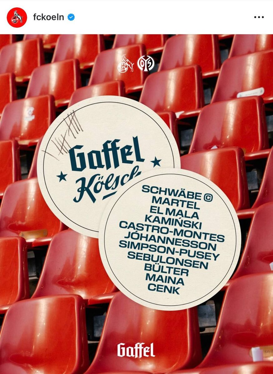 ✍️ Зацените, как немецкий ФК «Кельн» вписал пивного спонсора в представление состава на матч в соцсетях