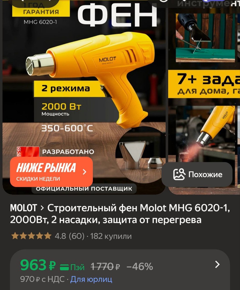 π»Π‘ΡΡΠΎΠΈΡΠ΅Π»ΡΠ½ΡΠΉ ΡΠ΅Π½ Molot MHG 6020-1, 2000ΠΡ, 2 Π½Π°ΡΠ°Π΄ΠΊΠΈ, Π·Π°ΡΠΈΡΠ° ΠΎΡ ΠΏΠ΅ΡΠ΅Π³ΡΠ΅Π²Π° - 963Ρ (Ρ.ΠΏΡΠΉ)