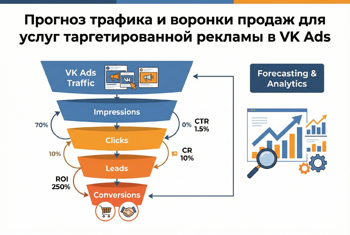 Прогноз трафика и воронки продаж для услуг таргетированной рекламы в VK Ads