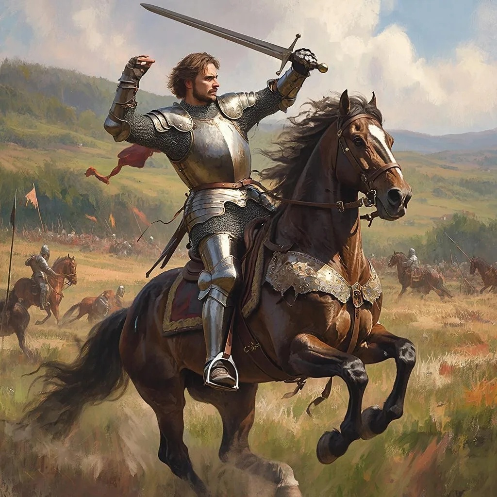 Представьте этого Рыцаря: он мчится на своём коне в полную скорость, его меч занесён, лицо решительно.