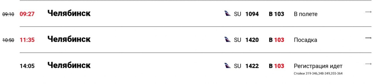 ▪️Рейс СУ 1094 должен был долететь в 13:55, теперь его ждут в 14:50. ▪️Рейс СУ 1420 пока ждут с 10-минутным опозданием — в 15:35. ▪️Рейс СУ 1421 должен вылететь с часовым опозданием в 17:20. Ранее в Шереметьево предупредили, что не принимают самолёты до 14:00 часов по челябинскому времени из-за непогоды. 🟥Контекст. Сегодня ночью в Москве выпало около 9 миллиметров осадков. Водителей предупредили о заторах на дорогах, а в МЧС выпустили экстренное предупреждение.