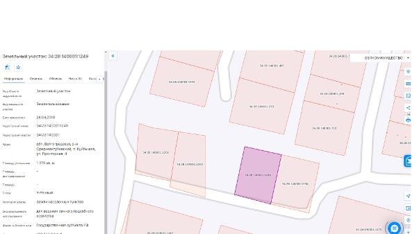 Название: Земельный участок с кадастровым номером 34:28:140001:1249 площадью 1276 кв.м, местоположением: обл