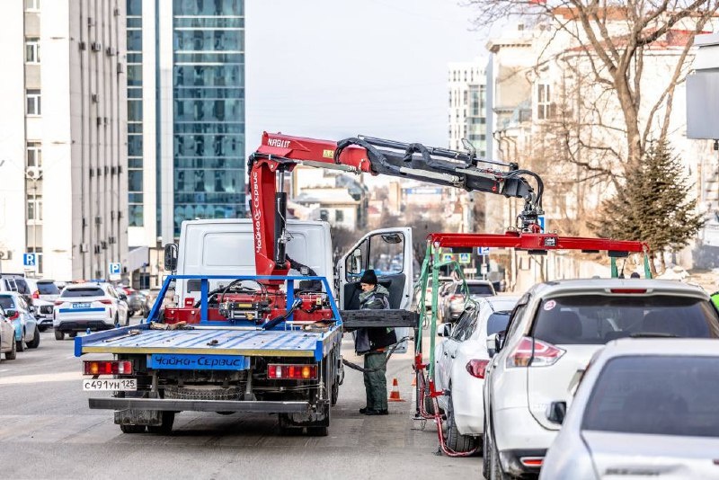 Во Владивостоке эвакуаторы массово увозят нарушителей парковки — сегодня нарушителям не повезло на Фонтанной, Русском острове и Зеленом