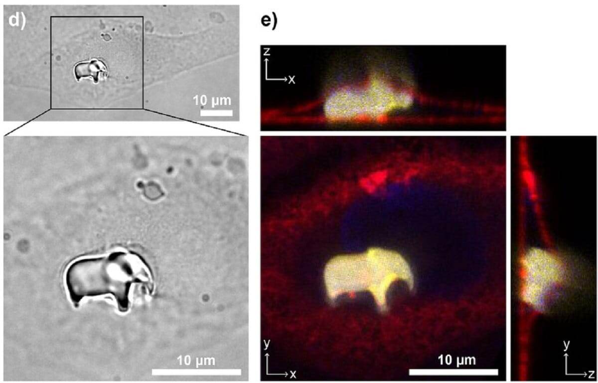 Словенские учёные совершили прорыв, впервые напечатав микроскопические 3D-объекты внутри живой клетки, не изменяя её ДНК. Внутри клетки появилась фигурка слона размером 10 микрометров и узоры, похожие на штрихкод. Для этого исследователи использовали усовершенствованный метод двухфотонной полимеризации. В клетку вводили каплю специального биосовместимого полимера (фоторезиста), который затвердевает только в точке одновременного фокуса двух лазерных лучей. Это позволило слой за слоем «лепить» объект, не повреждая саму клетку. После печати остатки материала растворили, оставив только готовую фигурку. Около половины клеток остались живы после процедуры, а некоторые даже передали напечатанный объект дочерним клеткам при делении. Эта технология открывает путь к созданию микроскопических «контейнеров» для точной доставки лекарств или диагностических меток прямо внутри клеток, что может революционизировать клеточную терапию и медицинские исследования. ПромТех