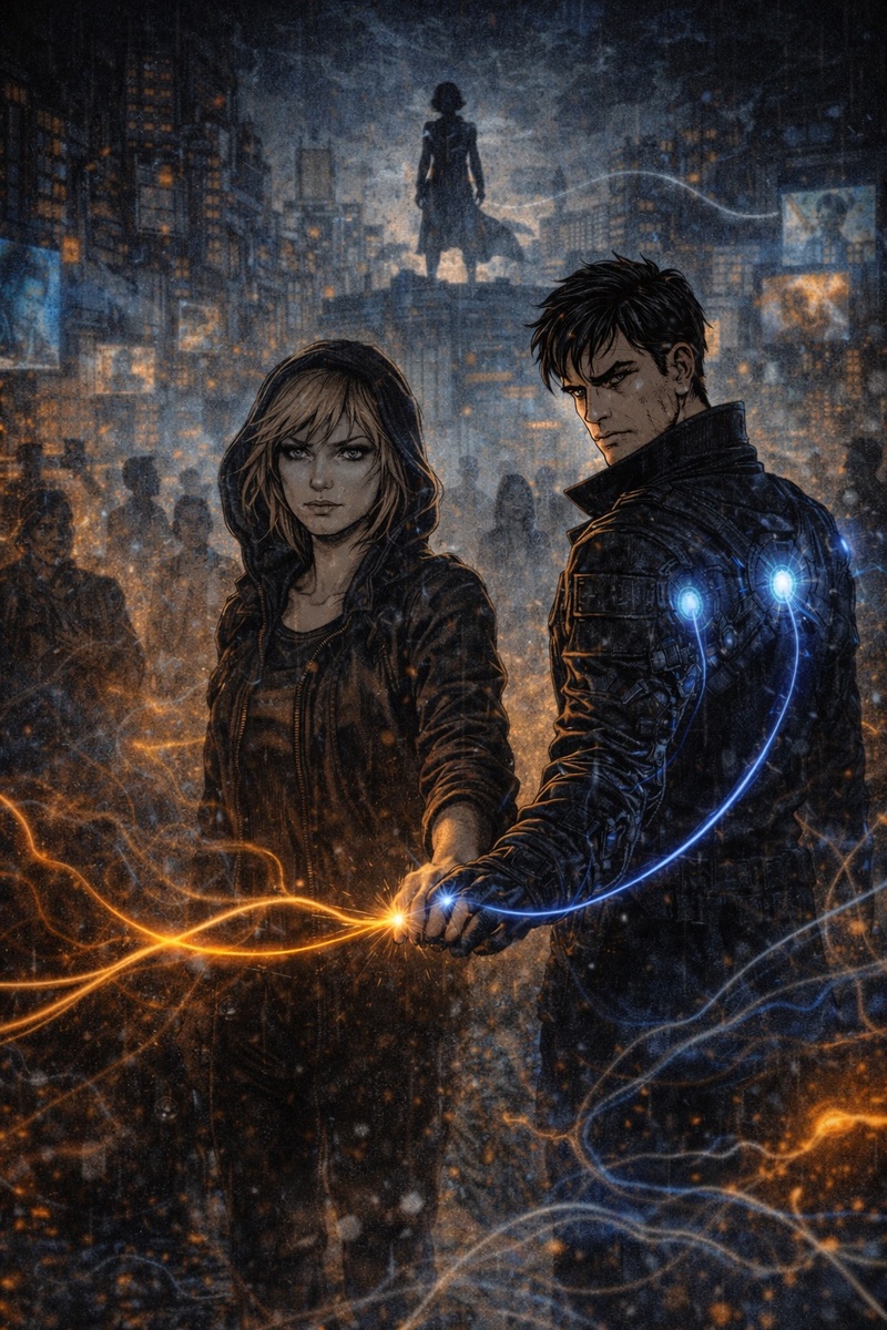 Она не просто соединяла их — она пошла наружу, переплетаясь с городом, улицами, людьми. Первые последствия были почти незаметны: фонари дрожали, голограммы мерцали, у прохожих внезапно появлялись тени прошлых страхов. Но затем это стало очевидно: случайные люди останавливались и плакали без причины, воздушные экраны показывали воспоминания, которые не принадлежали наблюдателям, дождь под их ногами вдруг стал горячим и холодным одновременно, словно мир пытался ощутить их внутреннюю боль. — Нить Мира не просто связала вас, — сказала Лира. — Она реагирует на ваши эмоции. И теперь она способна изменять реальность.