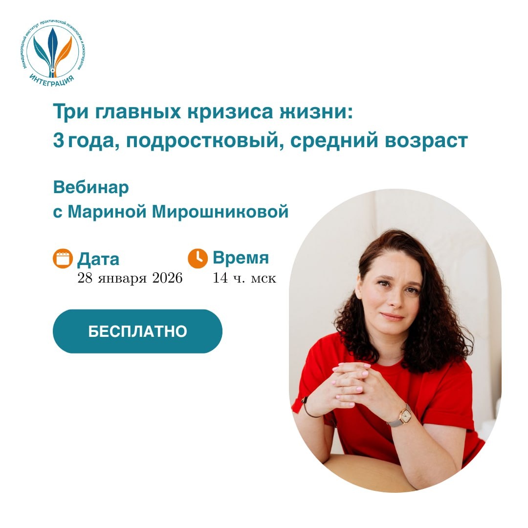 🎮 В ней надо проходить уровни, взрослея, и за это получать свои награды. Самое интересное, что в этой игре участвуют все без исключения: кто-то более, кто-то менее успешно, кому-то получается решить квест и найти сокровище, а кто-то буксует и застревает на каком-то этапе. Но игра идет дальше, а вернуться к «сохраненным результатам» и переиграть почти невозможно. Почти. Этапы взросления венчают возрастные кризисы. И если некоторые мы проходим, почти не помня этого, какие-то являются латентными и не проходят бурно, то о трех кризисах жизни этого сказать нельзя. 🔺 Кризис трех лет 🔺 Подростковый 🔺 Кризис среднего возраста Удивительно еще и то, что они логически связаны друг с другом. И в подростковом, а то и в зрелом возрасте мы будто откатываемся на шаг-два назад, пытаясь пройти один и тот же квест. Согласны? 💻 На бесплатном вебинаре «Три главных кризиса жизни - кризис 3 лет, подростковый и кризис среднего возраста» Марина Мирошникова, психолог, специалист в телесно-ориентированн