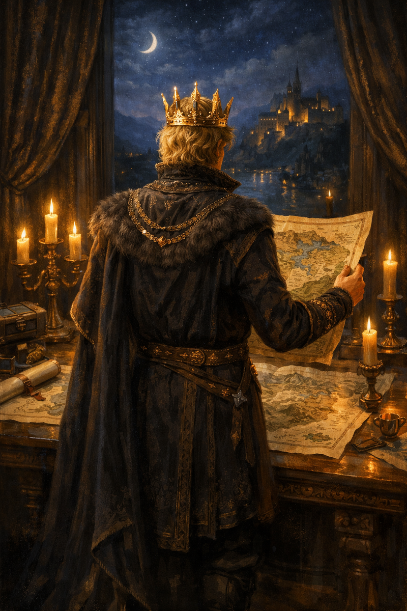 Король стоял спиной, в его руках была подробная карта королевства Церра.