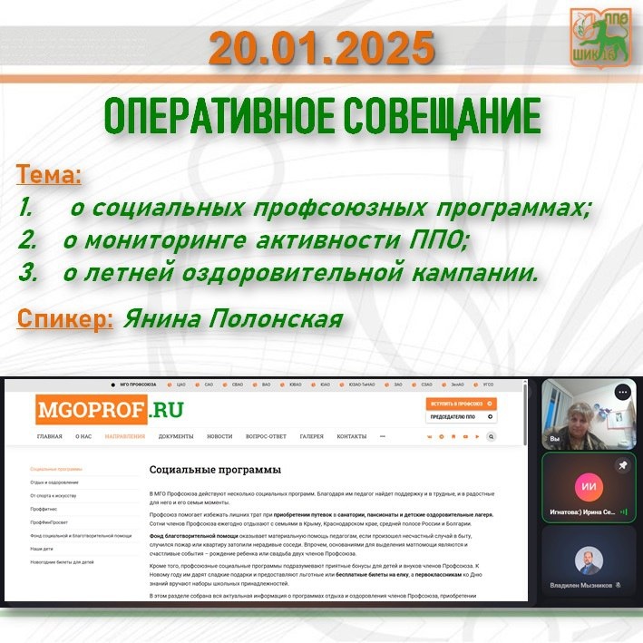 📣 20 января 2026 года на оперативном совещании педагогического коллектива председатель ППО ГАОУ Школа «ШИК 16» Я.А.Полонская выступила