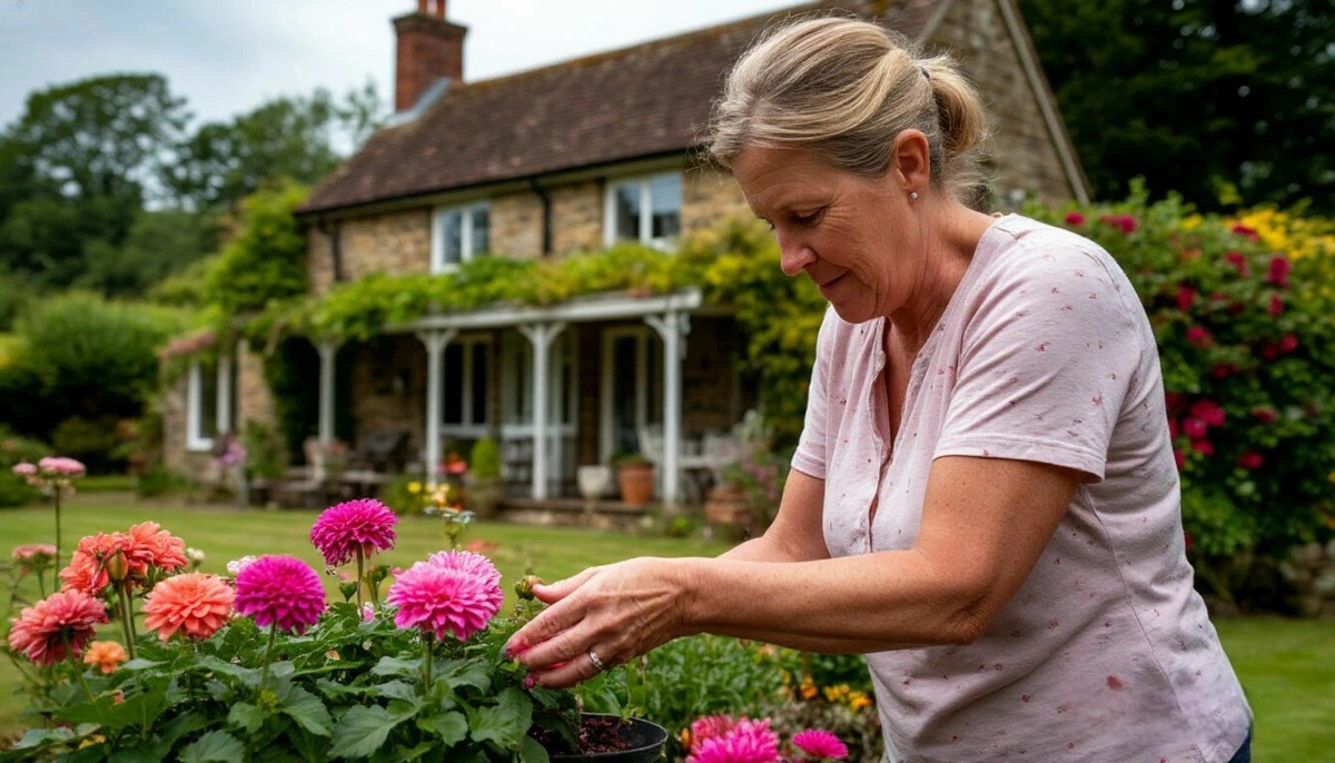 Свекровь стояла на клумбе перед домом с лопатой в руках и сажала георгины.