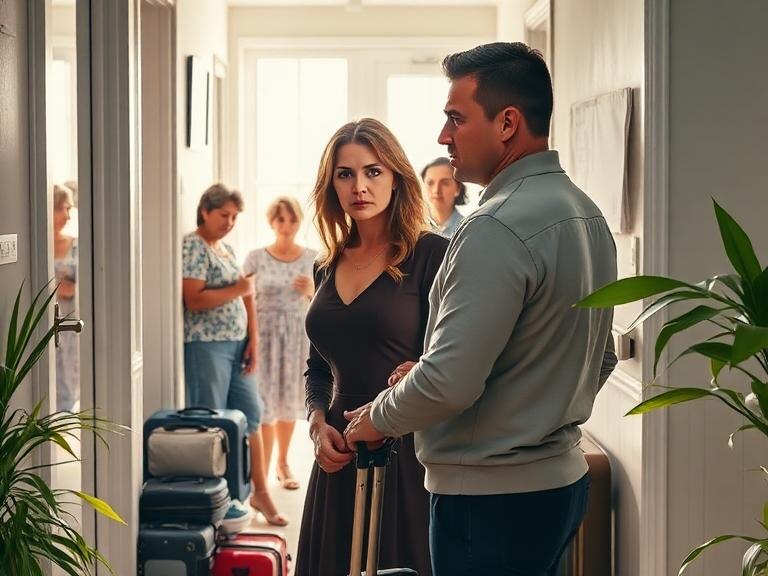 На площадке стояли Валентина Сергеевна, Ирина с двумя детьми, и Олег. И рядом — два чемодана, огромная сумка, пакет с какой-то бытовой химией и детская коляска. Как будто они приехали не «на минутку», а в новый офис.