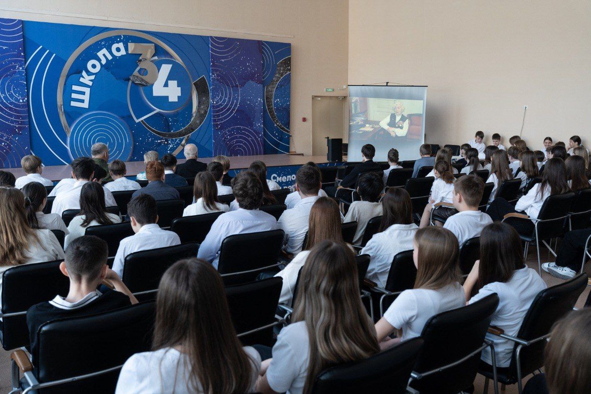 В актовом зале школы прошел Урок мужества, посвященный годовщине полного освобождения Ленинграда от фашистской блокады. Гостями мероприятия стали гвардии младший сержант морской пехоты Тихоокеанского флота, ветеран боевых действий, участник СВО, Валерий Гуняшов и ветеран боевых действий в Афганистане, участник ликвидации последствий аварии на ЧАЭС, Александр Баранов. На мероприятии ученики седьмых и одиннадцатых классов представили документальный фильм об осажденном Ленинграде. Ребята сами писали сценарий, снимали и монтировали видео, проводили интервью с блокадниками-кемеровчанами, эвакуированными во времена войны. «Мероприятие было посвящено годовщине окончания блокады. Ребята показали свой фильм. Это затронуло всех. Очень приятно видеть, как ребята смотрят на эти события и их осознают», - поделился Валерий Гуняшов. Съемка фильма проходила в рамках проекта «Их жизнь и смерть была побеждена» при поддержке президентского фонда культурных инициатив, кемеровского городского отделения