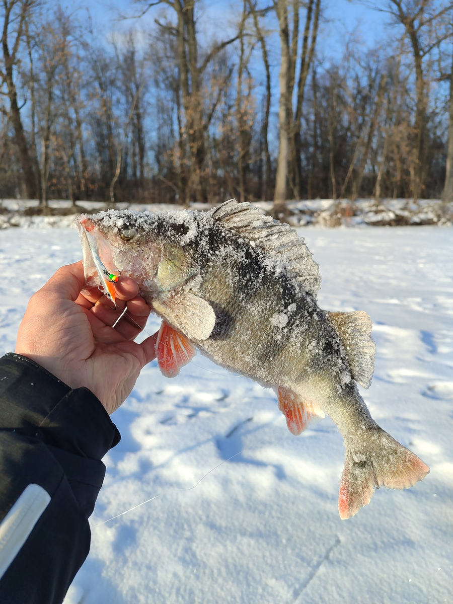 Особое внимание уделяйте температуре воздуха. Чем холоднее зима, тем пассивнее ведет себя окунь. Поэтому выбирать нужно дни с комфортной температурой около минус пяти градусов Цельсия и слабым ветром.